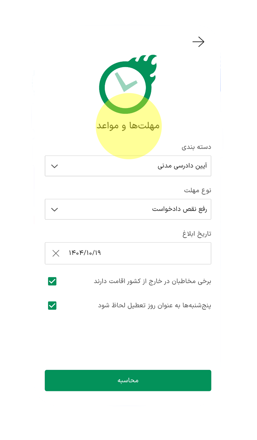 محاسبات مربوط به خسارت تاخیر تادیه، مهریه به نرخ روز، ارث، دیه، سن شمسی و قمری و تبدیل تاریخ.
