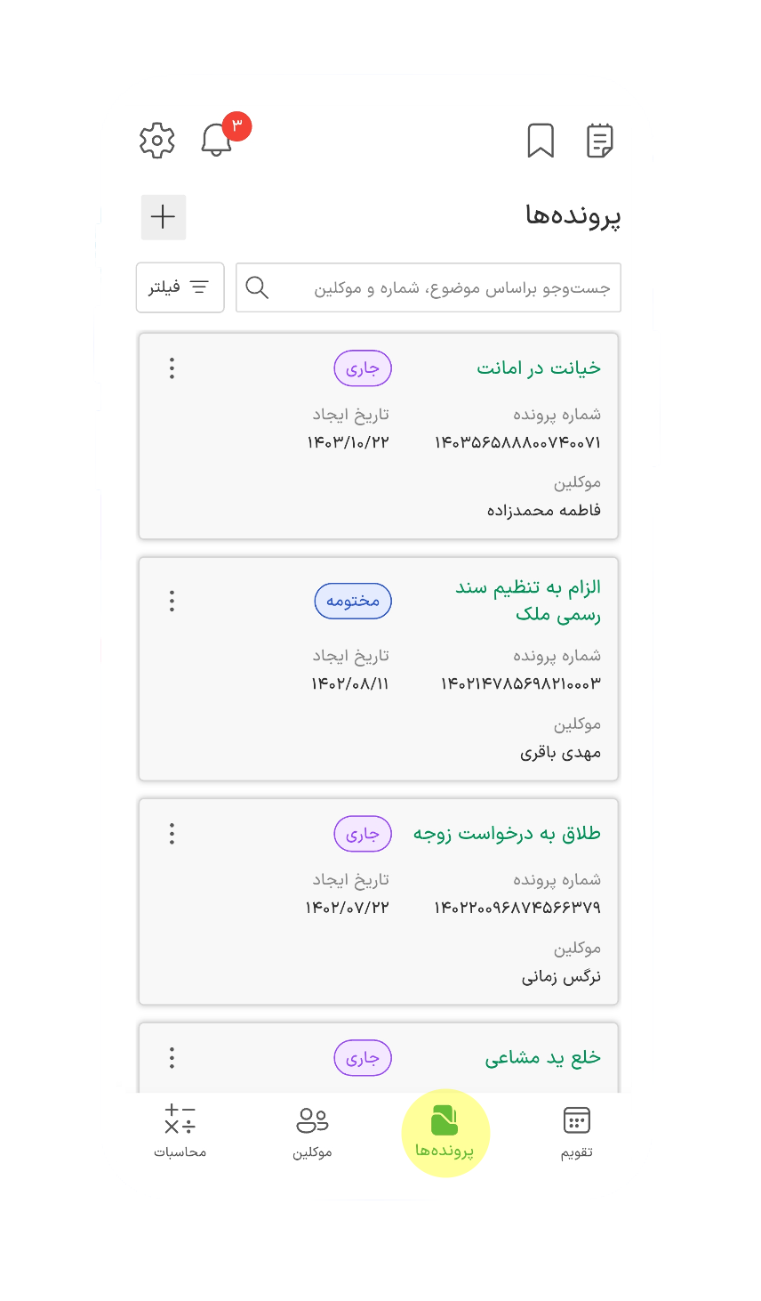 وکیلابزار: اپلیکیشنی برای ساماندهی پروندهها، موکلین، پیگیریها، مهلتها و مواعد قانونی، جلسات رسیدگی و انجام محاسبات تخصصی حقوقی.